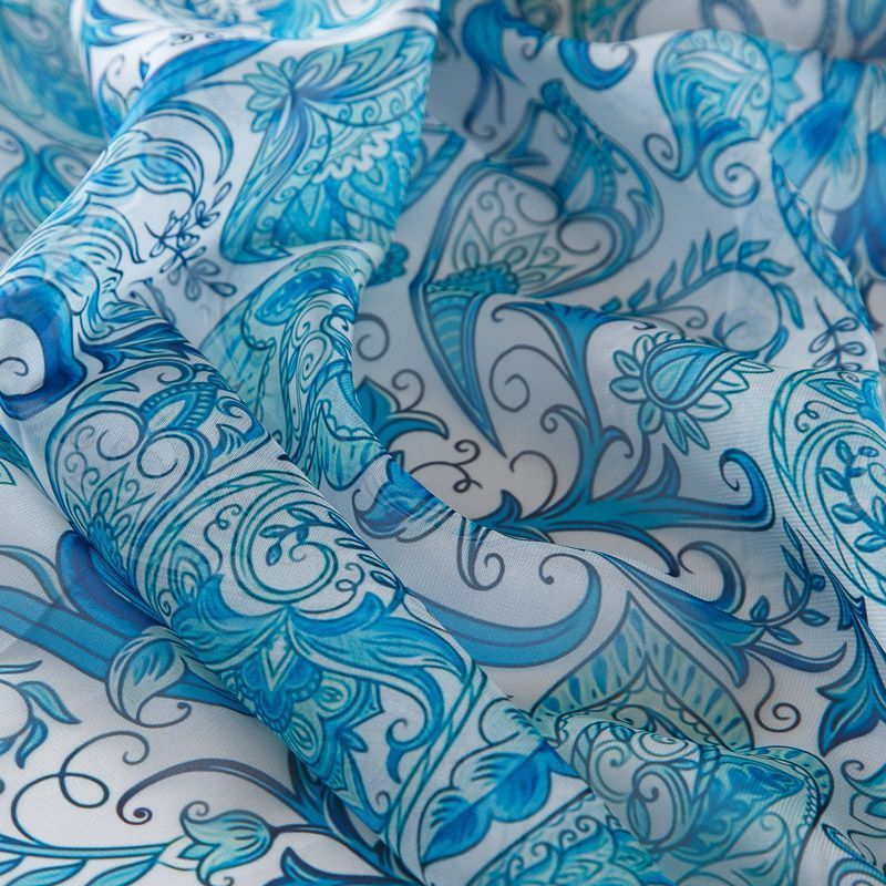 Шифон 068-17373 лазурно-голубой принтованный в Ухте