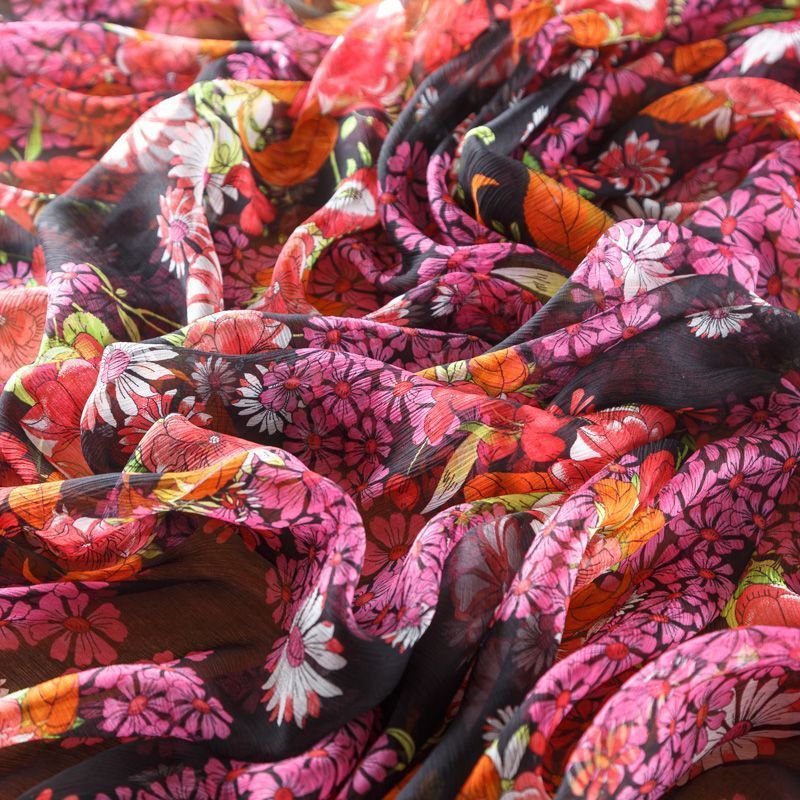 Шифон натуральный К02-425 черный принтованный в Ухте