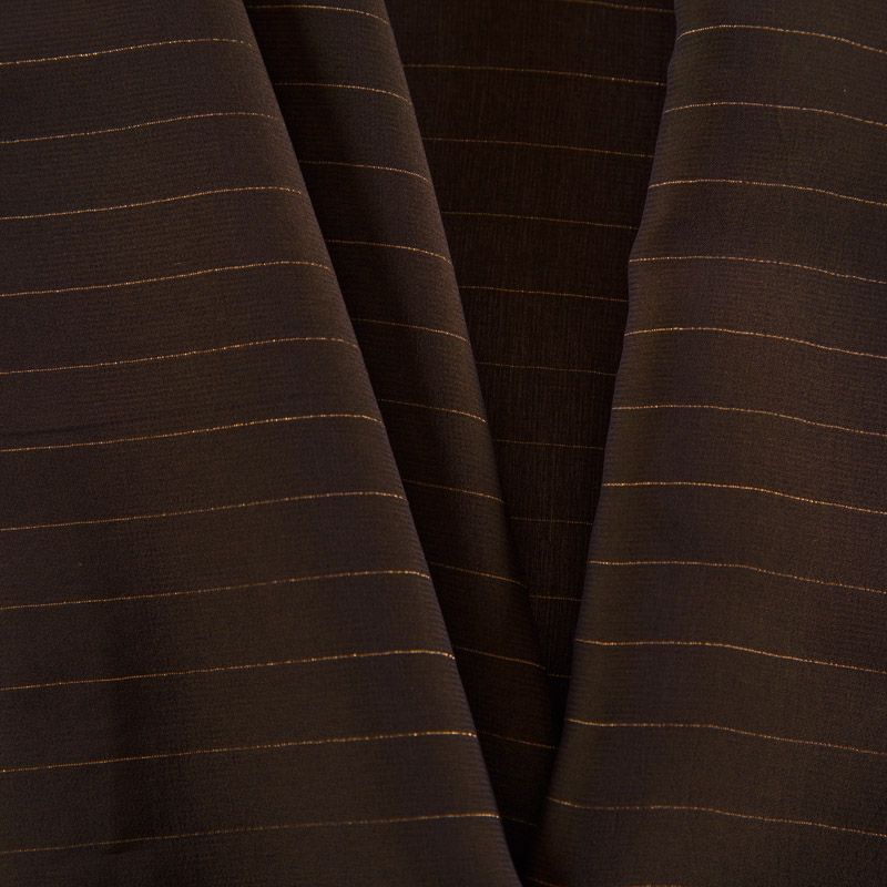 Итальянский смесовый шифон Gucci в оттенке темного шоколада с тонкими полосками люрекса. Полоски расположены горизонтально по ширине рулона.