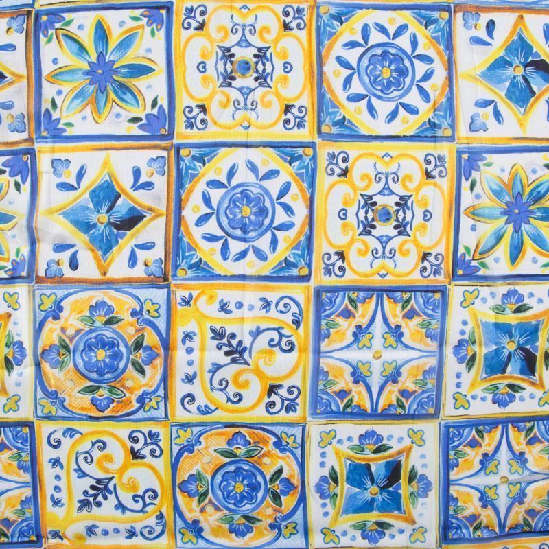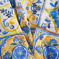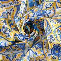 Шифон шелковый 068-12318 желто-голубой принтованный