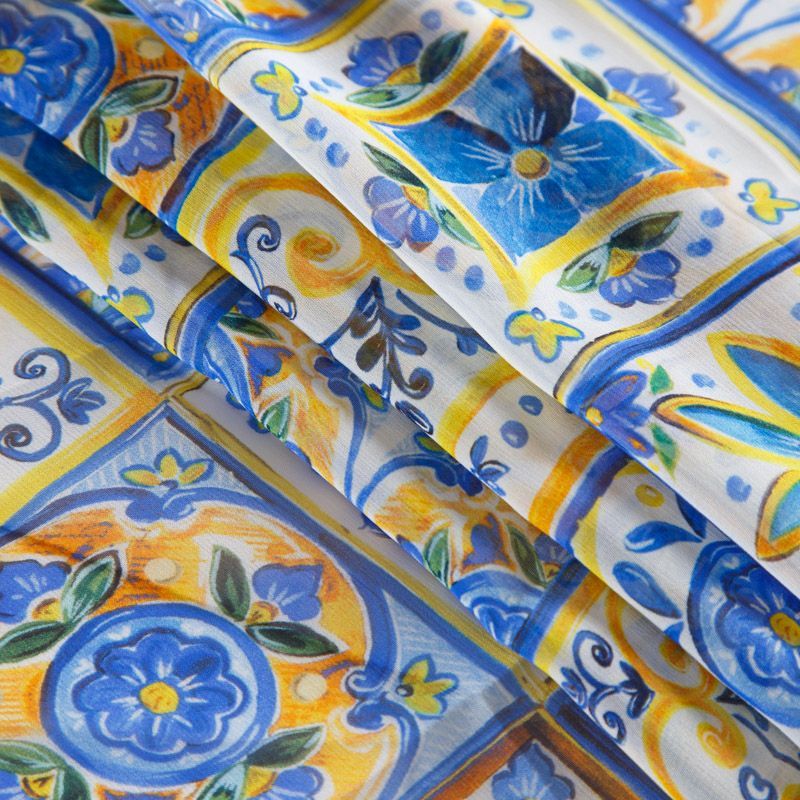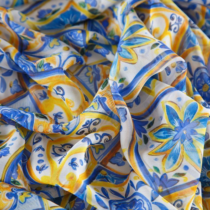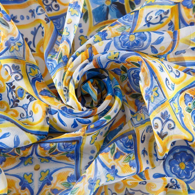 Шифон шелковый 068-12318 желто-голубой принтованный в Ухте