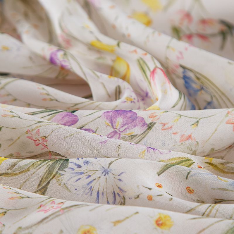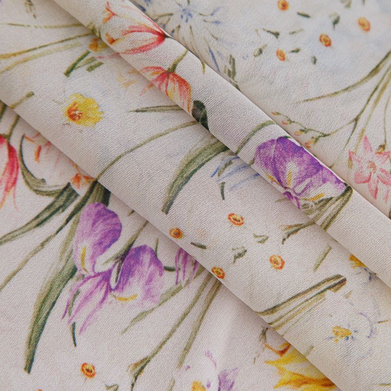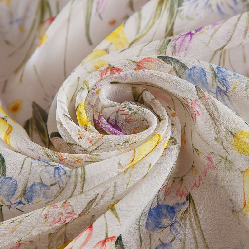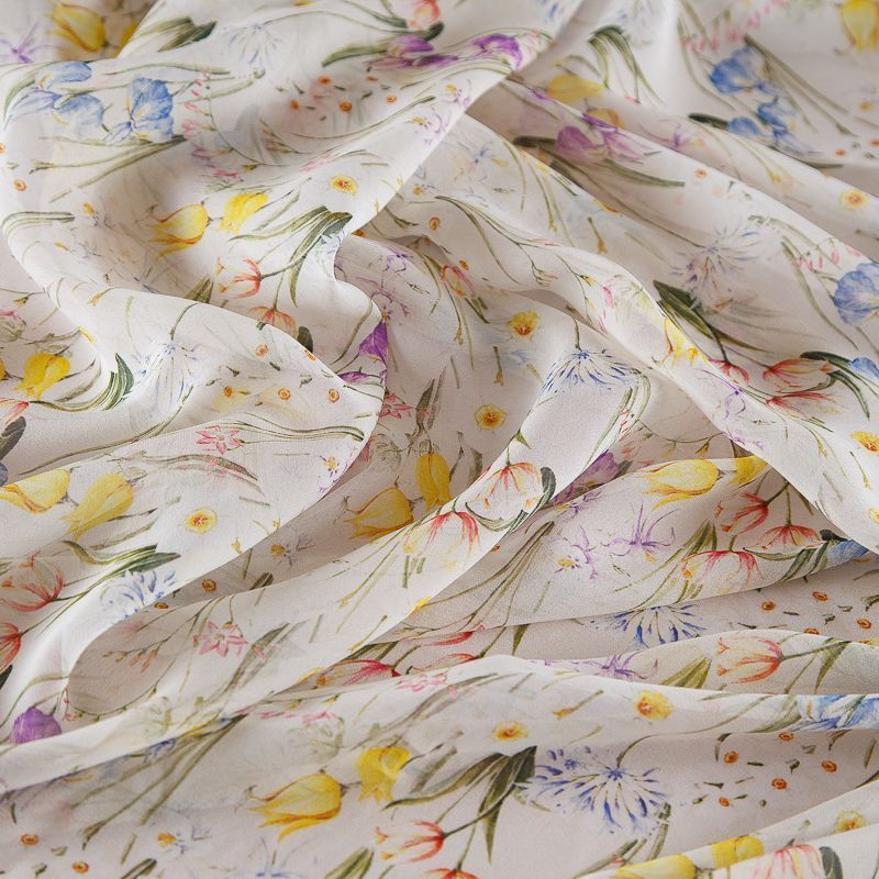 Шифон шелковый 068-19177 молочный принтованный в Ухте