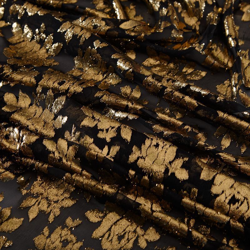 Шифон шелковый с люрексом Yves Saint Laurent 068-19076 черный/золото