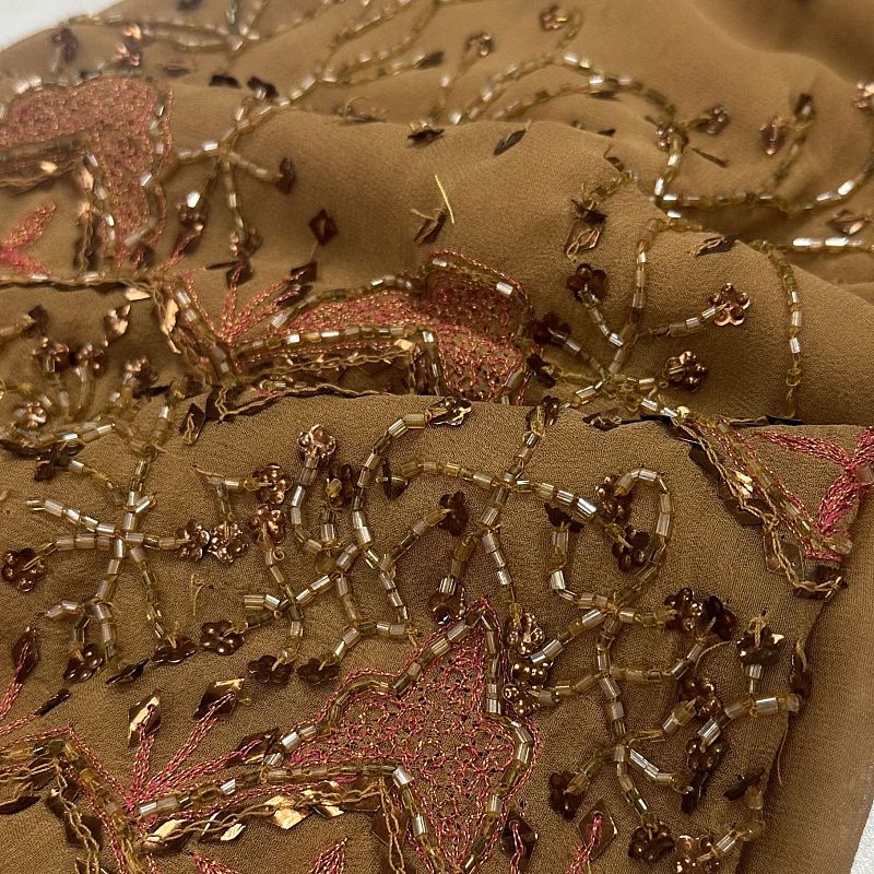 Шифон шелковый с вышивкой 068-20795 карамельный ОСТАТОК 1,3 метра в Ухте