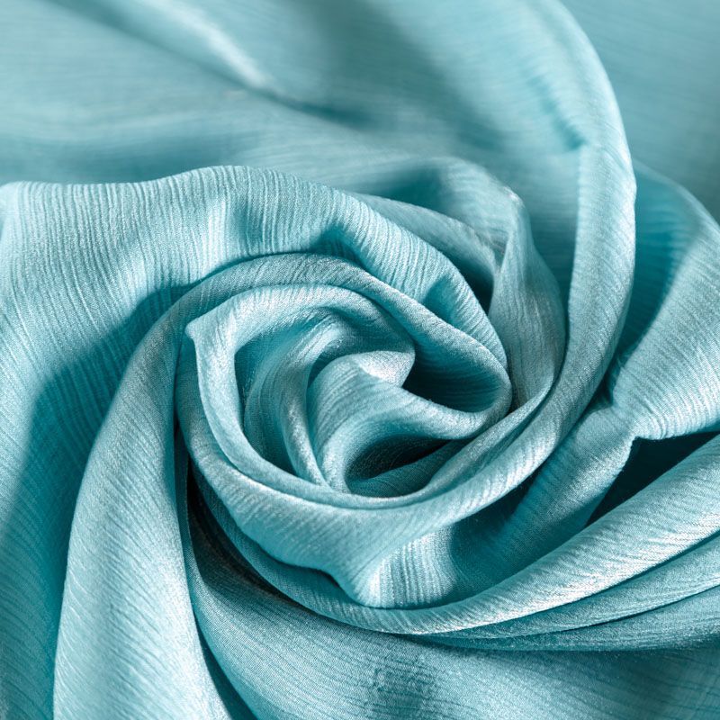 Воздушная жатая ткань, легкая, тонкая, полупрозрачная. Не тянется и хорошо сохраняет форму. На ощупь шифон-жатка очень мягкий и приятный. Подойдет для пошива тончайших воздушных блуз, изумительных вечерних и летних платьев в пол, коротких коктейльных платьев, топов, блузок, туник и элегантных шарфов.
