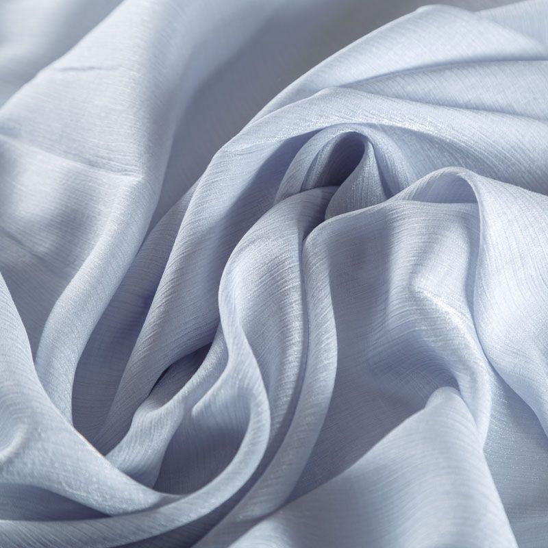 Воздушная жатая ткань, легкая, тонкая, полупрозрачная. Не тянется и хорошо сохраняет форму. На ощупь шифон-жатка очень мягкий и приятный. Подойдет для пошива тончайших воздушных блуз, изумительных вечерних и летних платьев в пол, коротких коктейльных платьев, топов, блузок, туник и элегантных шарфов.