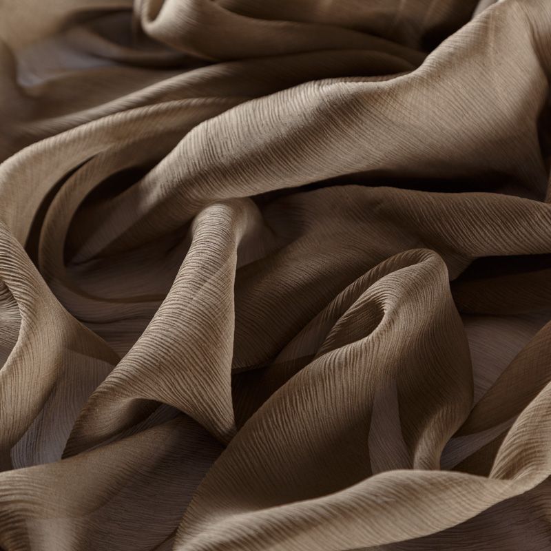 Воздушная шелковая жатая ткань, легкая, тонкая, полупрозрачная. На ощупь шифон-жатка очень мягкий и приятный, не тянется. Подойдет для пошива тончайших воздушных блуз, изумительных вечерних и летних платьев в пол, коротких коктейльных платьев, топов, блузок, туник и элегантных шарфов.