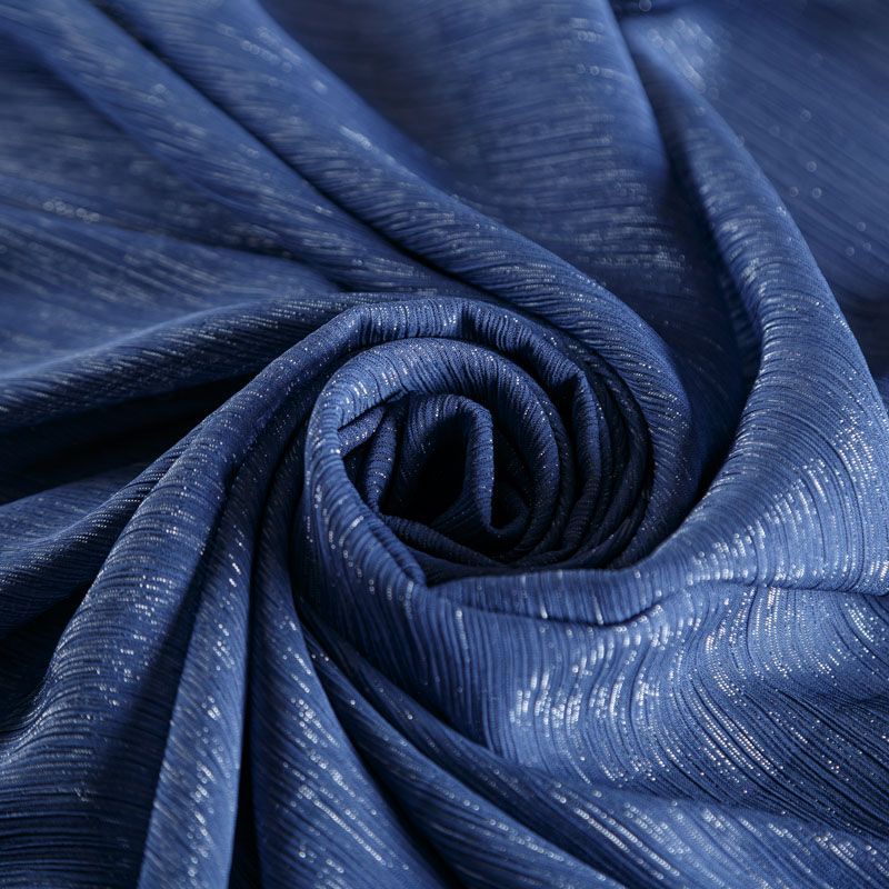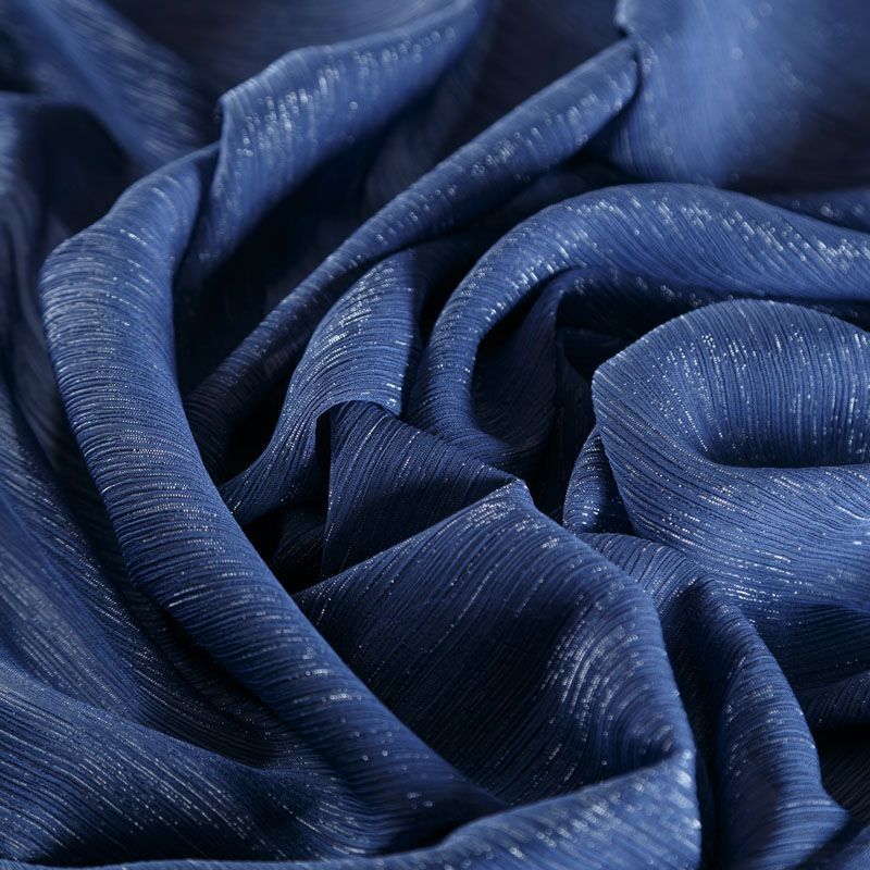 Воздушная жатая ткань с прозрачной люрексной нитью, легкая, тонкая, полупрозрачная. Не тянется и хорошо сохраняет форму. На ощупь шифон-жатка очень мягкий и приятный. Подойдет для пошива тончайших воздушных блуз, изумительных вечерних и летних платьев в пол, коротких коктейльных платьев, топов, блузок, туник и элегантных шарфов.