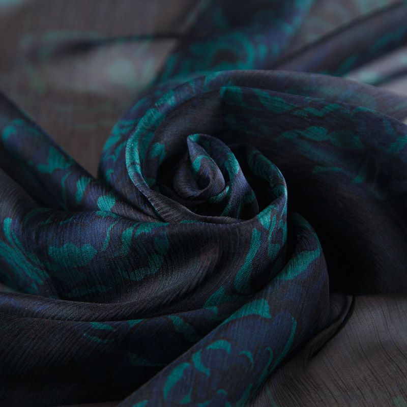 Шифон-жатка шелковый 068-12213 черный принтованный в Ухте