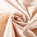 Мягкий и нежный хлопок бежевого оттенка с вышивкой и перфорацией. Узор выполнен путём машинной вышивки нитками в цвет ткани и расположен по всему полотну, обе кромки оформлены фестонами. Фактура ткани однородная, имеет тенденцию к сминаемости, не тянется, приятная на ощупь. Может потребоваться подклад. Идеально подходит для создания летних платьев, сарафанов, юбок, блузок и топов.