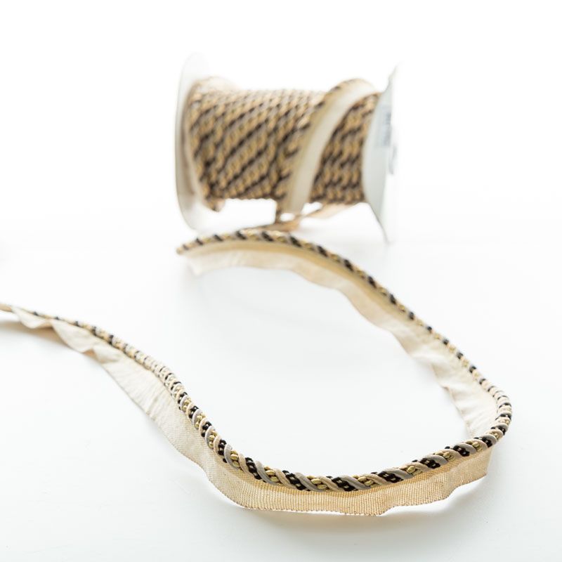 Декоративный витой круглый шнур, снабженый тесьмой для втачивания в стыковочный шов изделия. Применяется для отделки мягкой мебели, чехлов, декорирования домашнего текстиля, штор, покрывал, подушек. Позволяет изделию сохранять форму, образуя каркас. Диаметр шнура - 6 мм.