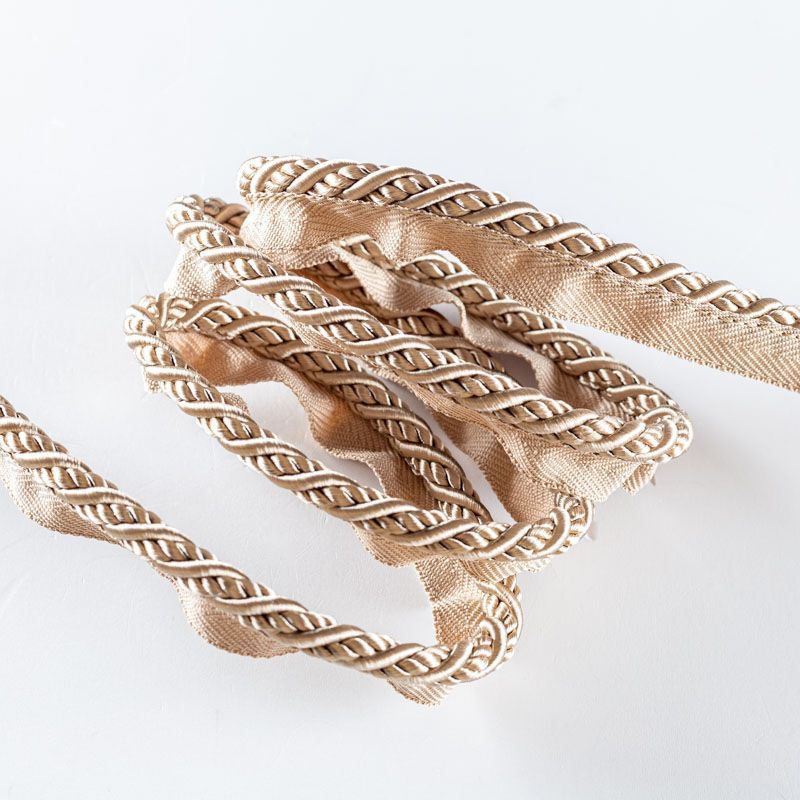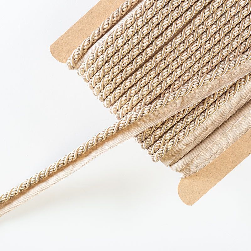 Декоративный витой круглый шнур, снабженый тесьмой для втачивания в стыковочный шов изделия. Применяется для отделки мягкой мебели, чехлов, декорирования домашнего текстиля, штор, покрывал, подушек. Позволяет изделию сохранять форму, образуя каркас. Диаметр шнура - 8 мм. Общая ширина шнура с тесьмой - 2 см.