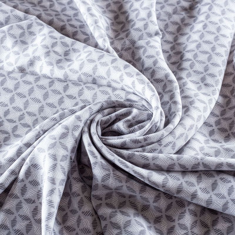 Плательно-блузочный штапель с мелким абстрактным принтом на светло-сером фоне. Мягкий, тонкий, нежный, пластичный, приятный на ощупь, хорошо драпируется, практичный. Подойдет для пошива платья, топа, блузки, рубашки, юбки, летних брюк.