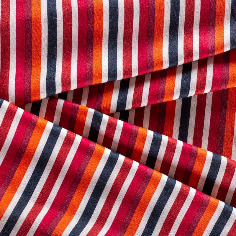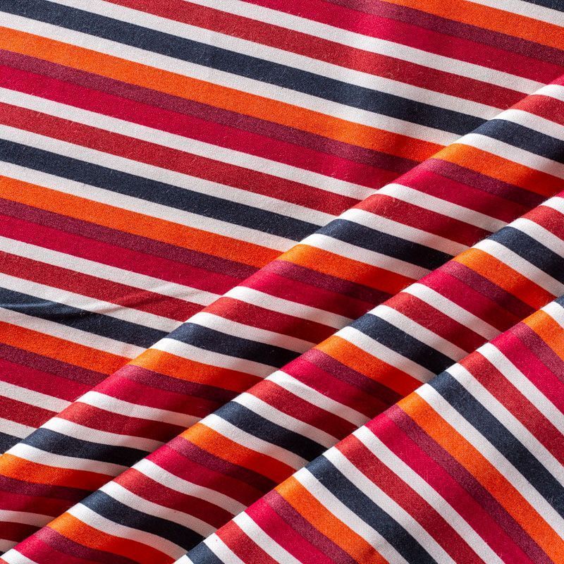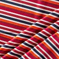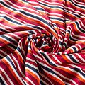 Плательно-блузочный штапель в вертикальную полоску в терракотово-красных тонах на белом фоне. Мягкий, тонкий, нежный, пластичный, приятный на ощупь, хорошо драпируется, практичный. Подойдет для пошива платья, топа, блузки, рубашки, юбки, летних брюк.
