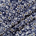 Плательно-блузочный штапель с не крупным цветочным принтом на темно-синем фоне. Мягкий, тонкий, нежный, пластичный, приятный на ощупь, хорошо драпируется, практичный. Подойдет для пошива платья, топа, блузки, рубашки, юбки, летних брюк.