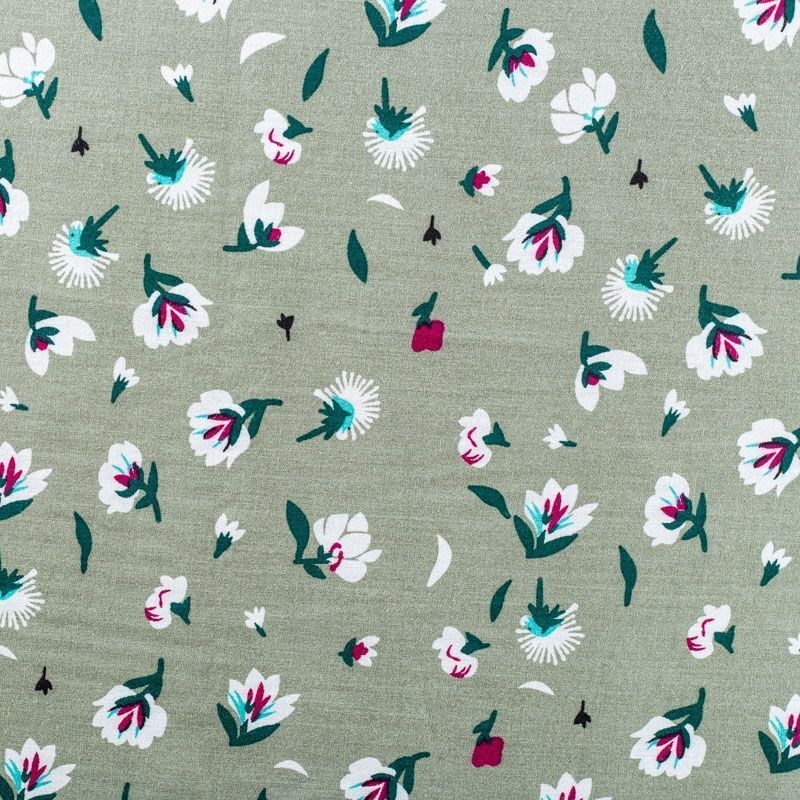 Штапель 069-01797 полынный зеленый принтованный в Ухте