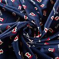 Плательно-блузочный штапель темно-синего оттенка с принтом известного бренда. Ткань мягкая, тонкая, нежная, пластичная, приятная на ощупь, хорошо драпируется, практичная, поверхность слегка фактурная. Подойдет для пошива платья, топа, блузки, рубашки, юбки, летних брюк.