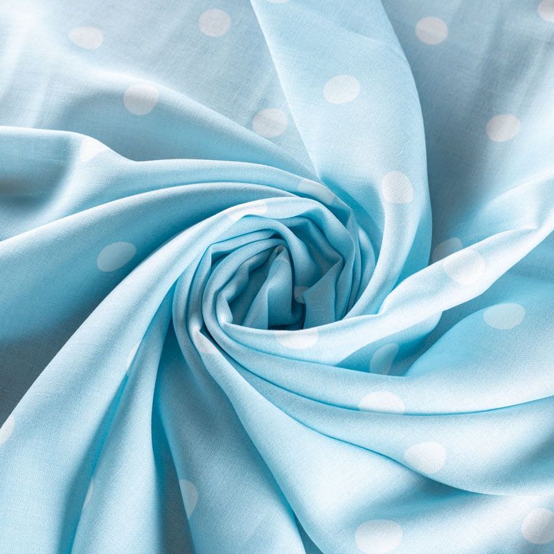 Плательно-блузочный штапель в белый горох на пастельном голубом фоне. Ткань мягкая, тонкая, нежная, пластичная, приятная на ощупь, хорошо драпируется, практичная. Подойдет для пошива платья, топа, блузки, рубашки, юбки, летних брюк.
