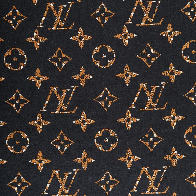 Плательно-блузочный штапель с принтом лого известного бренда в бежево-коричневых тонах на черном фоне. Материал мягкий, тонкий, нежный, пластичный, приятный на ощупь, хорошо драпируется, практичный. Подойдет для пошива платья сарафана, топа, блузки, рубашки, юбки, летних брюк, комбинезона, а также домашней одежды.
