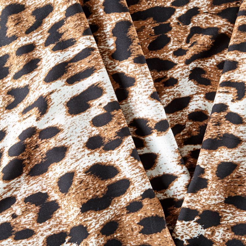 Плательно-блузочный штапель с анималистическим принтом. Мягкий, тонкий, нежный, пластичный, приятный на ощупь, хорошо драпируется, практичный. Подойдет для пошива платья, топа, блузки, рубашки, юбки, летних брюк, комбинезона.