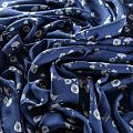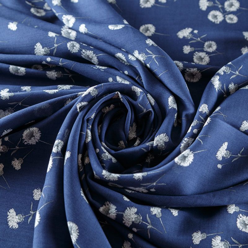 Итальянский плательно-блузочный штапель темно-синего цвета с нежным цветочным принтом. Ткань мягкая, тонкая, нежная и пластичная, приятная на ощупь, хорошо драпируется, практичная. Подойдет для пошива платья, топа, блузки, рубашки, юбки, летних брюк.