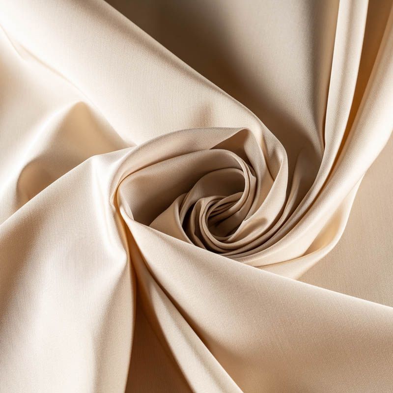 Роскошная тафта классического сливочного цвета. Ткань красиво драпируется, немного шуршит при сминании, имеет натуральный шелковый мерцающий блеск. Ткань непрозрачная. Рекомендуем для пошива свадебного или вечернего платья, пышной юбки, корсета, палатина, жакета или нарядного костюма.
