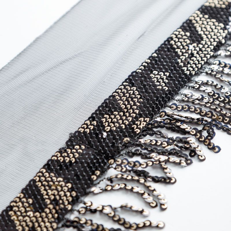 Тесьма декоративная 140 мм с пайетками PA0827 черный/серебро