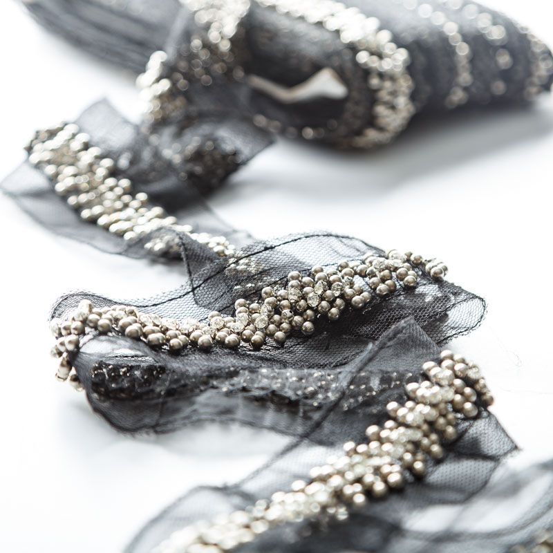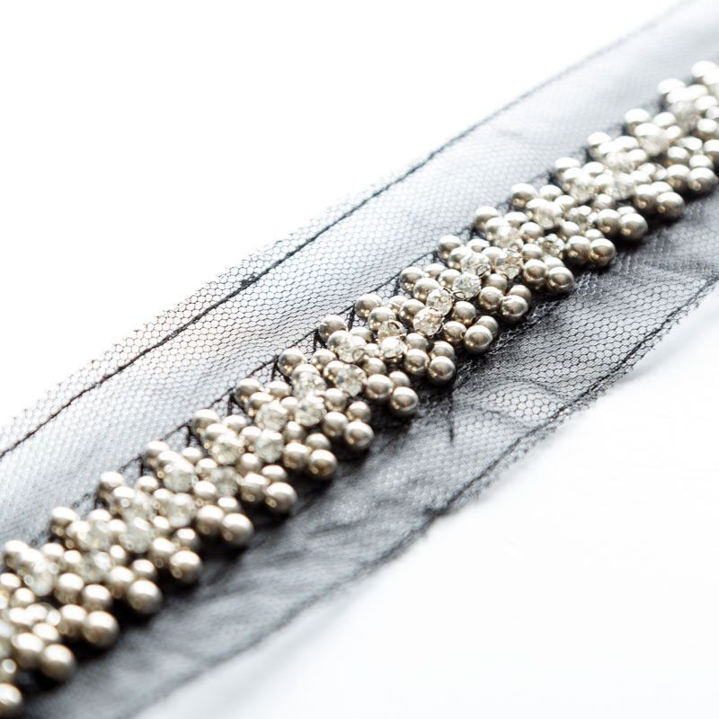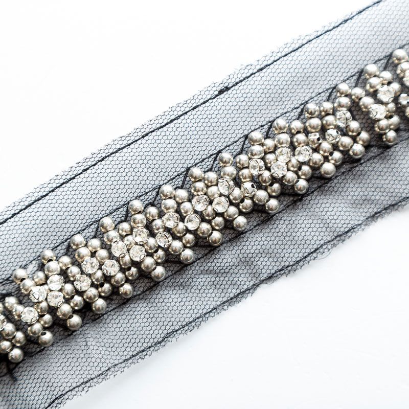 Тесьма декоративная 50 мм с бисером и стразами PA0418 черный