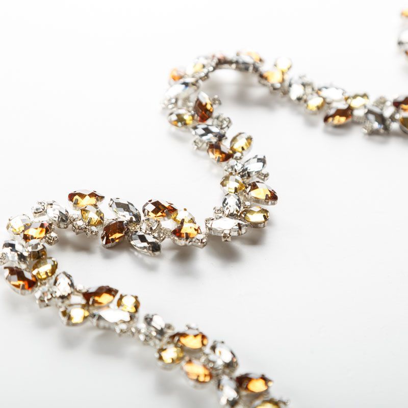 Декоративная тесьма на жесткой основе со стразами используется для декора и отделки одежды, создания украшений и т.д.