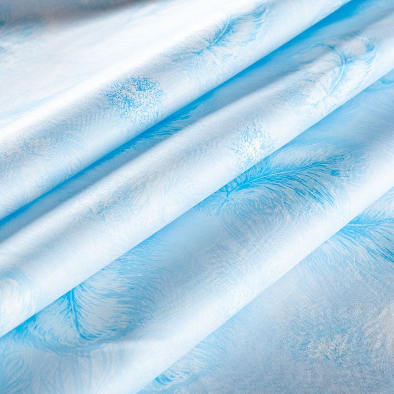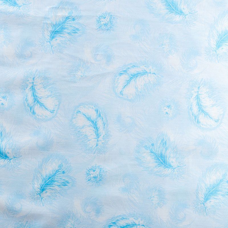 Тик приятного голубого оттенка с нежным воздушным принтом средней плотности. Используется для пошива наперников. Износостойкий, может использоваться для изготовления других изделий. Ткань подходит для любых наполнителей, искусственных и натуральных.