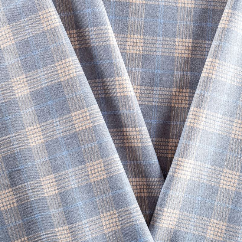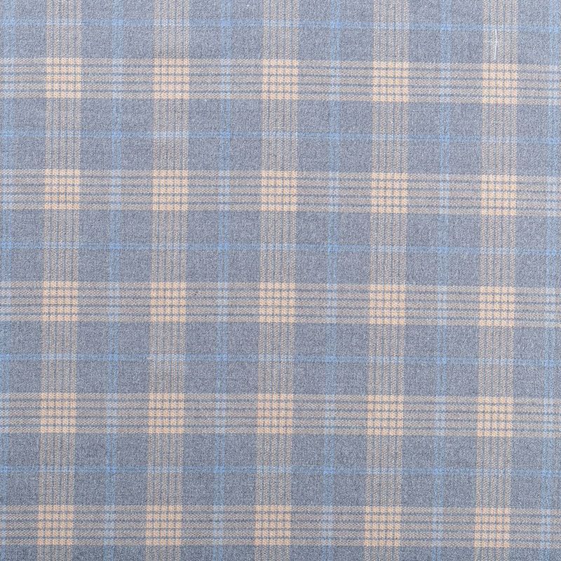 Ткань костюмно-плательной плотности, мягкая и приятная на ощупь, немного тянется за счет эластана в составе, держит форму, хорошо драпируется и образует мягкие складки. Сочетание линий пастельно-желтого и голубого цветов на приятном сером фоне образует сложную красивую клетку. Ткань отлично подойдет на костюмы, юбки, брюки, шорты, платья, жакеты.