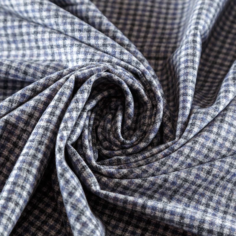 Итальянская шерстяная фланель в молочном оттенке в мелкую клетку. Ткань костюмно-плательной плотности, очень мягкая, приятная на ощупь, не толстая, пластичная. Прерасно подойдет для пошива платья, сарафана, юбки, брюк, шорт, жакета, жилета, а также верхней одежды с дополнительным утеплителем.