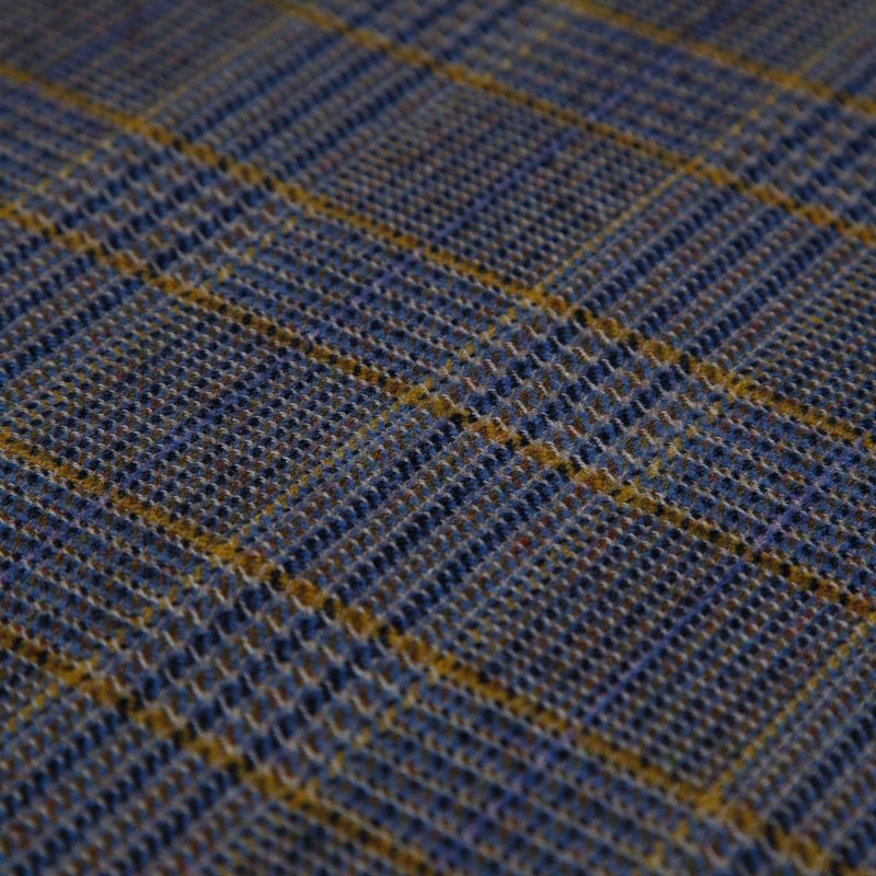 Итальянская костюмно-плательная смесовая шерсть средней плотности, не сухая, пластичная, приятная на ощупь, формоустойчива, не мнется, хорошо драпируется. Красивая клетка тартан образована за счет сочетания полос синего, голубого, желтого и песочного оттенков. Ткань отлично подойдет на костюм, жилет, жакет, легкое пальто, юбку, брюки, плате, сарафан, шорты.