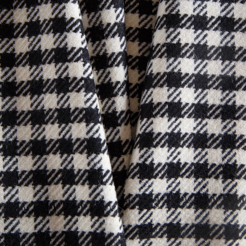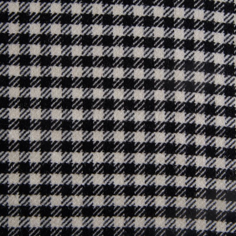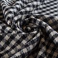 Итальянская костюмно-плательная шерсть средней плотности, не сухая, пластичная, приятная на ощупь, формоустойчива, не мнется, хорошо драпируется. Мелкая клетка образована за счет сочетания полос черного и молочного оттенков. Ткань отлично подойдет на костюм, жилет, жакет, легкое пальто, юбку, брюки, плате, сарафан, шорты.