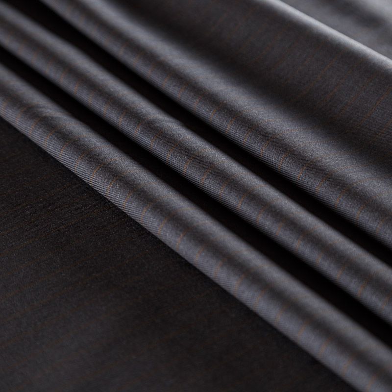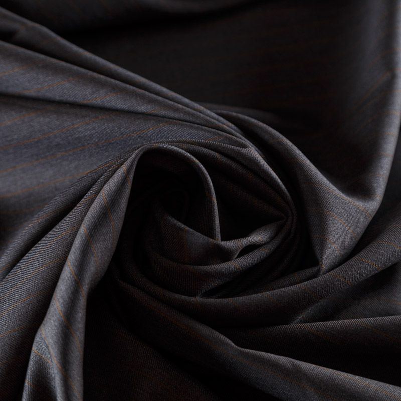 Итальяская костюмно-плательная шерсть шикарного качества в тонкую полоску. Ткань средней плотности, тонкая, очень приятная на ощупь, драпируется в слегка держащие форму складки, с диагональным плетением, не тянется. Подойдет для всех видов изделий - платьев, сарафанов, модных жакетов, жилетов, брючных и юбочных костюмов, кюлотов, брюк-палаццо, юбок различных фасонов.