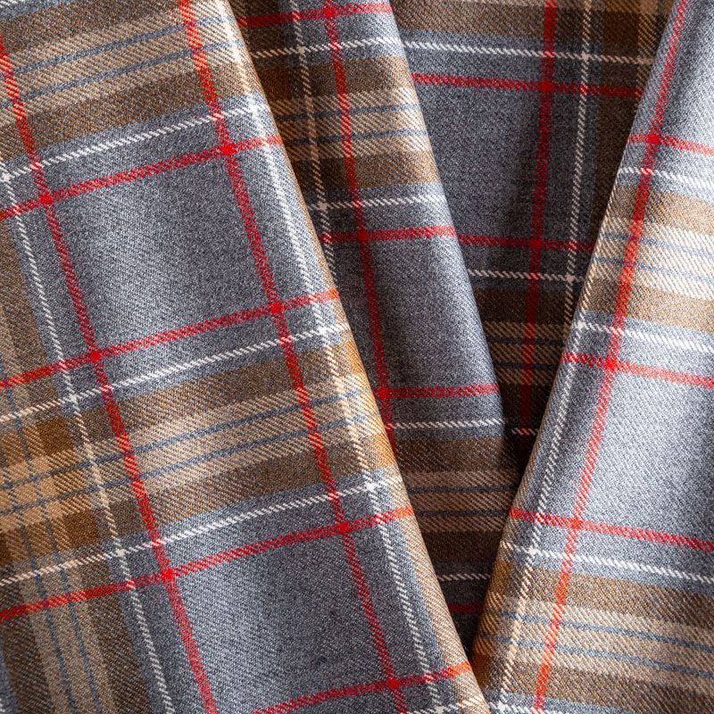 Итальянская костюмная шерсть средней плотности, мягкая и приятная на ощупь, формоустойчива, хорошо драпируется и образует мягкие складки. Сочетание линий карамельного, красного и белого цветов образует сложную красивую клетку тартан. Ткань отлично подойдет на костюмы, юбки, брюки, платья, жакеты, для школьной формы.