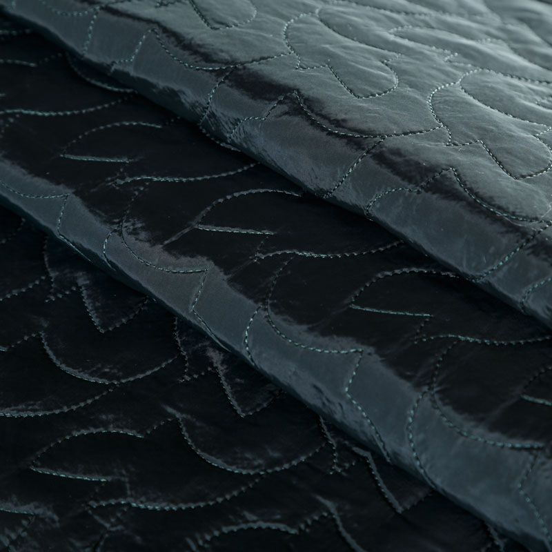 Двухслойная курточная ткань темно-зеленого оттенка, простеганная фигурной вышивкой нитками в тон. Нижний слой - синтепон, верхний - плотный матовый полиэстер. Очень мягкая и легкая, пластичная, хорошо драпируется. Прекрасно подойдет для  пошива легких пальто, курток, жилетов, накидок-кейпов, объемных сумок.