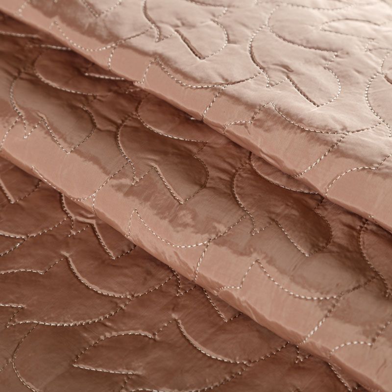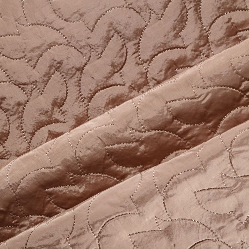 Двухслойная курточная ткань холодного бежевого оттенка, простеганная фигурной вышивкой нитками в тон. Нижний слой - синтепон, верхний - плотный матовый полиэстер. Очень мягкая и легкая, пластичная, хорошо драпируется. Прекрасно подойдет для пошива легких пальто, курток, жилетов, накидок-кейпов, объемных сумок.