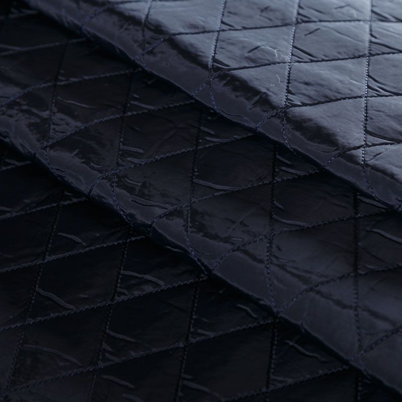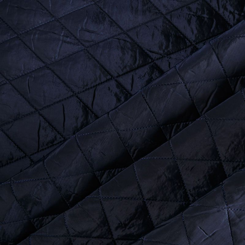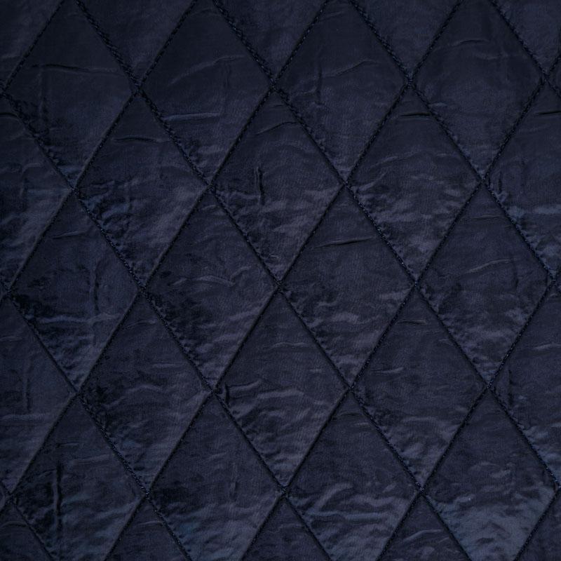 Двухслойная курточная ткань темно-синего оттенка, простеганная не крупными ромбами. Нижний слой - синтепон, верхний - полиэстер, по качеству напоминает болонь. Очень мягкая и легкая, пластичная, хорошо драпируется. Прекрасно подойдет для  пошива легких пальто, курток, жилетов, накидок-кейпов, объемных сумок.