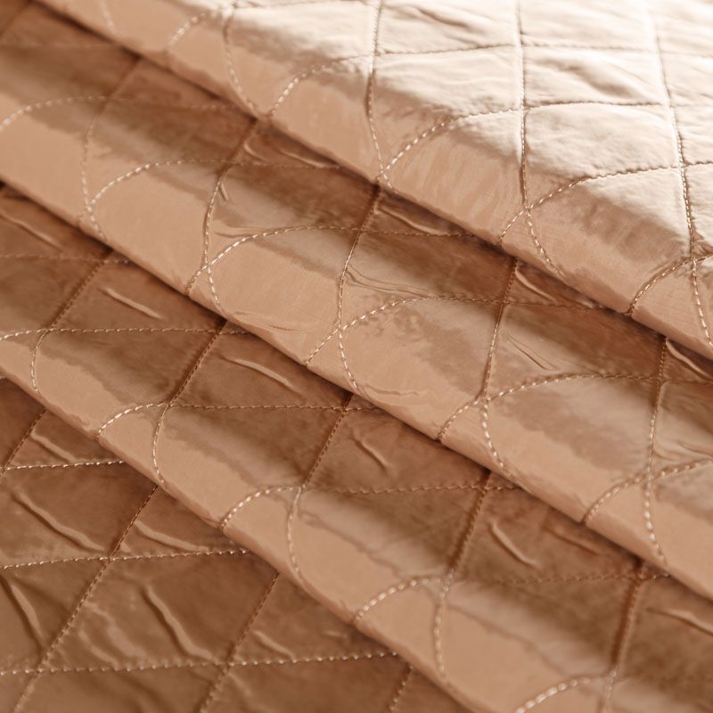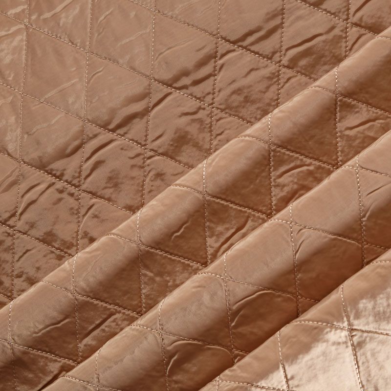 Двухслойная курточная ткань бежевого оттенка, простеганная не крупными ромбами. Нижний слой - синтепон, верхний - матовый фактурный полиэстер. Очень мягкая и легкая, пластичная, хорошо драпируется. Прекрасно подойдет для  пошива легких пальто, бомберов, парки, курток, жилетов, накидок-кейпов, объемных сумок.