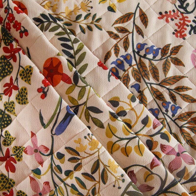 Итальянская трехслойная курточная ткань насыщенного молочного цвета с ярким принтом, простеганная ромбами. Нижний слой - гладкий матовый полиэстер синего цвета, средний слой - синтепон, верхний - принтованный креп-шифон. Очень мягкая и легкая, пластичная, хорошо драпируется. Прекрасно подойдет для пошива легких пальто, бомберов, парки, курток, жилетов, накидок-кейпов, объемных сумок.