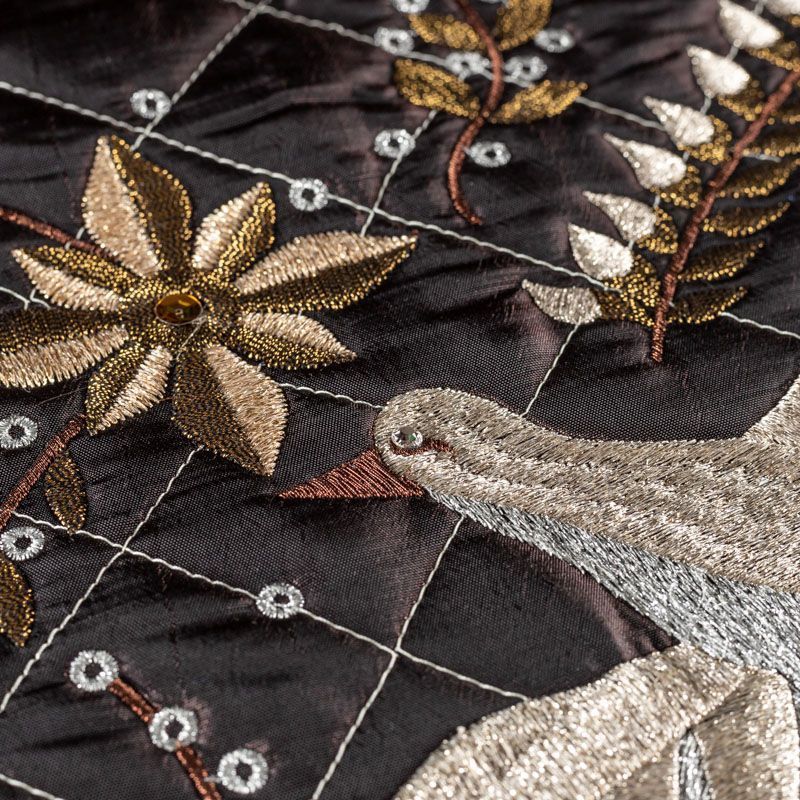 Ткань курточная с вышивкой К20-323 темный шоколад в Ухте