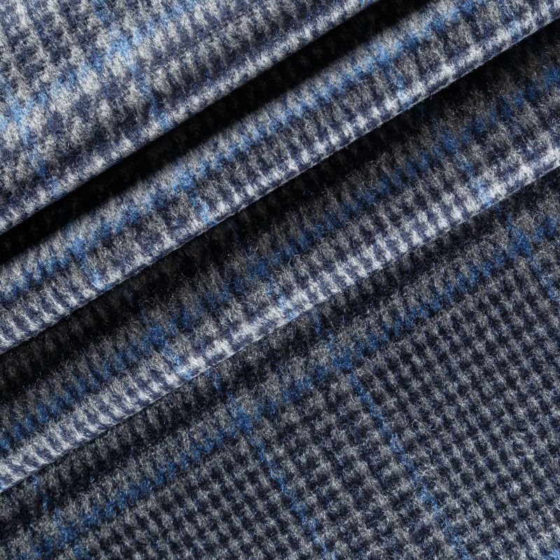 Итальянский плотный пальтовый кашемир темно-серого оттенка. Сочетание линий черного и синего цвета образуют эффектую клетку. Ткань великолепно держит форму, имеет мягкий направленный ворс, поверхность мягкая, шелковистая и приятная на ощупь. Идеально подойдет для пальто прямого кроя, кокона, бомбера, куртки, жилета.