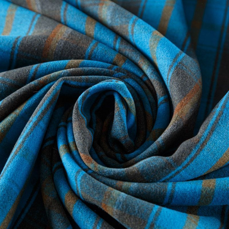 Пальтовая ткань в сине-голубом оттенке в клетку. Ткань плотная, достаточно теплая, комфортная для одежды на сезон осень-зима. Полотно имеет короткий ворс. Мягкое и нежное на ощупь, не толстое и не тяжелое, хорошо держит форму. Прекрасно подойдет для пошива женских пальто, теплых костюмов, кейпов, мягких бомберов, жилетов и головных уборов.