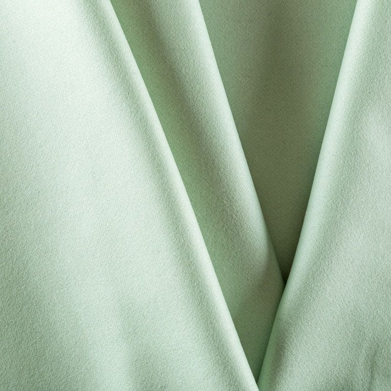 Пальтовая итальянская шерсть в светлом оттенке мяты. Ткань плотная, достаточно теплая, комфортная для одежды на сезон осень-зима. Полотно имеет короткий ворс. Мягкое и нежное на ощупь, не толстое и не тяжелое, хорошо держит форму. Прекрасно подойдет для пошива женских пальто, теплых костюмов, кейпов, мягких бомберов, жилетов и головных уборов.