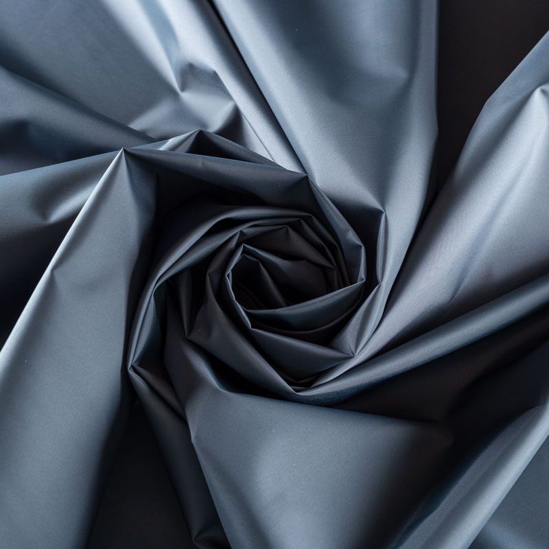 Это матовая, тонкая, гладкая, но очень прочная ткань, с ровной, плотной и однородной поверхностью. Материал легкий, пластичный, хорошо держит форму, с водооталкивающей пропиткой. Подходит для изготовления  плащей, курток, ветровок, бомберов, одежды для домашних питомцев.