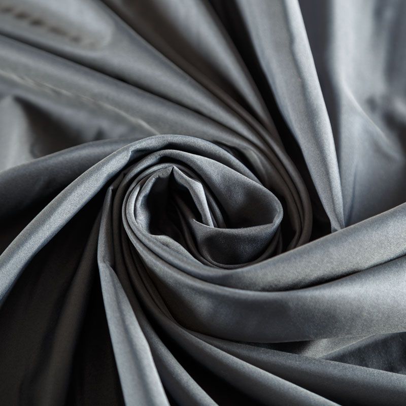 Плотная прочная плащевая ткань серого оттенка. Поверхность ткани матовая, ровная и гладкая. Подходит для изготовления  плащей, курток, ветровок, бомберов, одежды для домашних питомцев, туристического снаряжения.