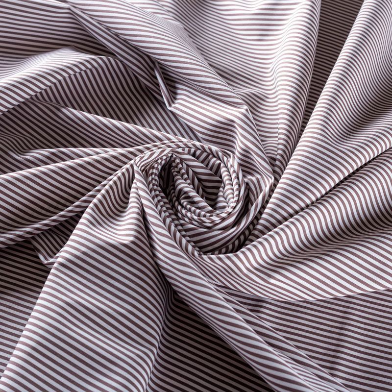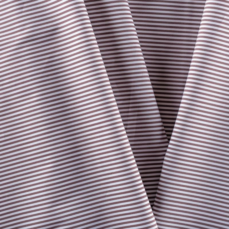 Итальянский плательно-рубашечный хлопок в узкую полоску шоколадного оттенка. Ткань мягкая, лёгкая, непрозрачная, пластичная и приятная к телу, хорошо драпируется, имеет гладкую матовую поверхность и сатиновое плетение. Прекрасно подойдет как для пошива платья-рубашки, сарафана, платьев различных фасонов, туники, топа, летнего костюма, комбинезона.