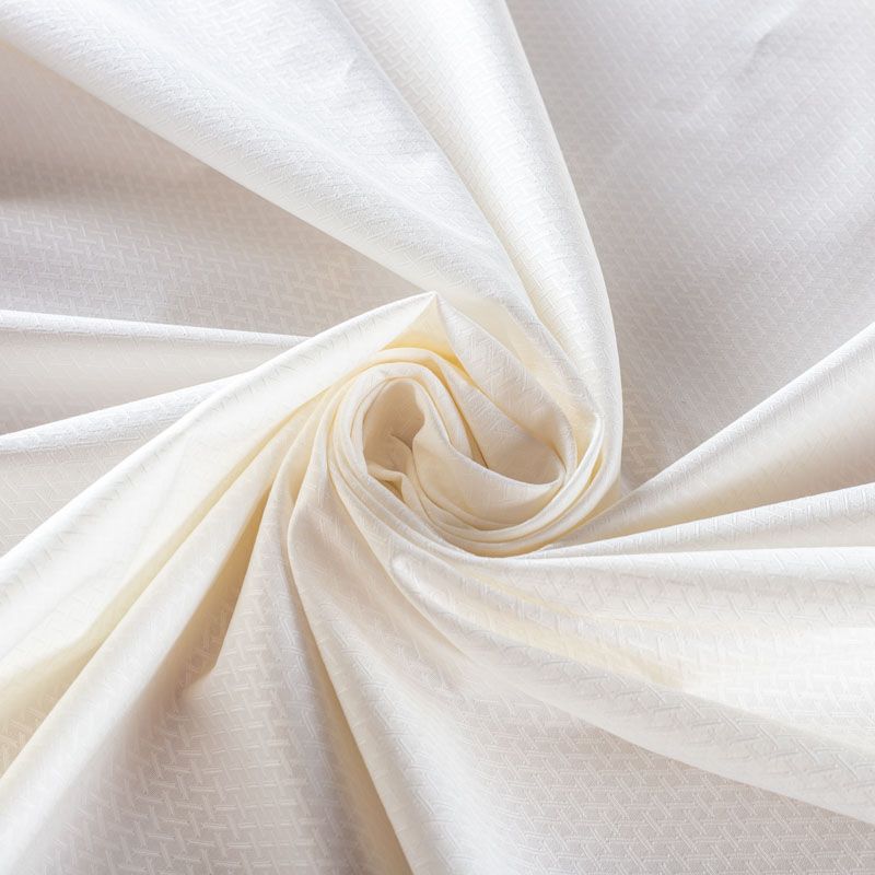 Белоснежный итальянский плательно-сорочечный хлопок с эластаном с жаккардовой "елочкой". Ткань мягкая, тонкая, лёгкая, непрозрачная, пластичная и приятная к телу, хорошо драпируется, имеет фактурную поверхность, сатиновый блеск. Прекрасно подойдет как для пошива предметов мужского гардероба, так и для блуз, платья-рубашки, сарафана, туники, топа, летнего костюма.