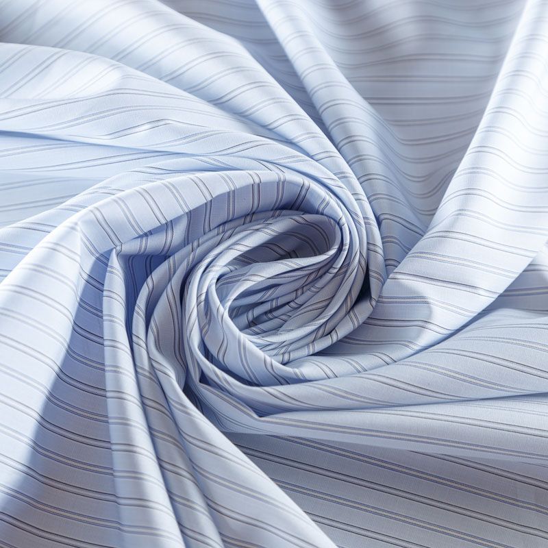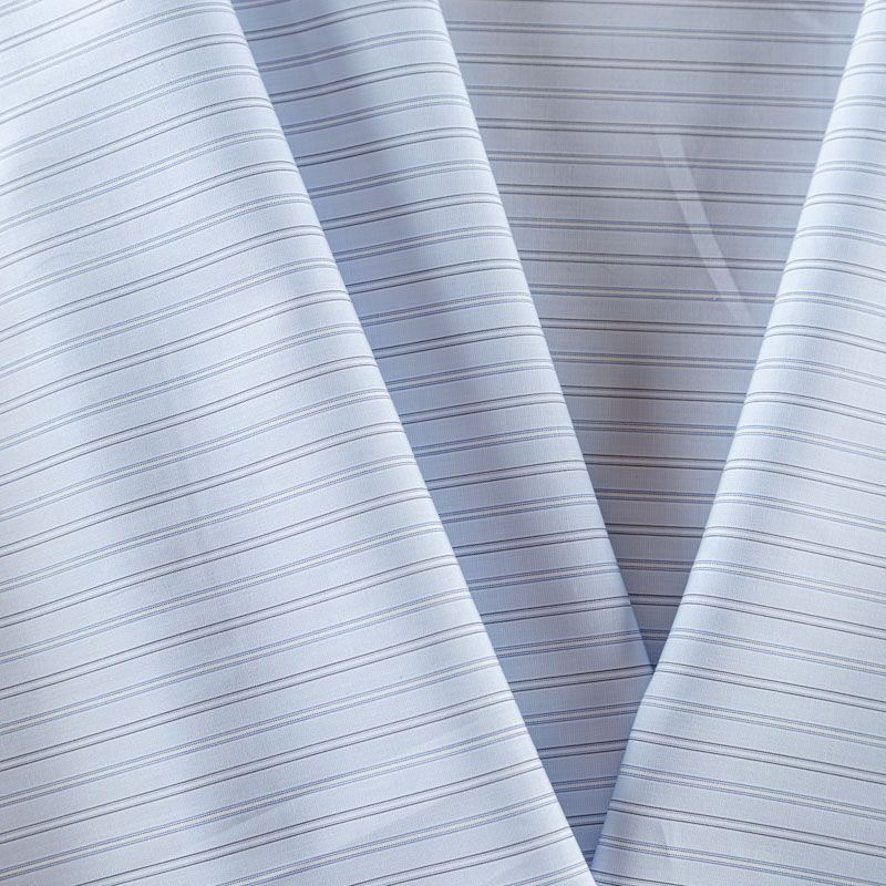 Итальянский плательно-рубашечный хлопок в тонкую серуб полоску. Ткань мягкая, лёгкая, слегка прозрачная, пластичная и приятная к телу, хорошо драпируется, имеет гладкую матовую поверхность и сатиновое плетение. Прекрасно подойдет как для пошива платья-рубашки, сарафана, платьев различных фасонов, туники, топа, летнего костюма, комбинезона, детской и мужской одежды.